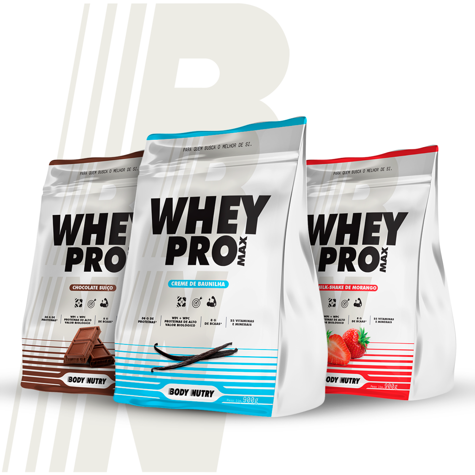 Nossa Whey Pro possui 36 g de proteínas e 8 g de BCAA por porção recomendada diária, além de 25 vitaminas e minerais.