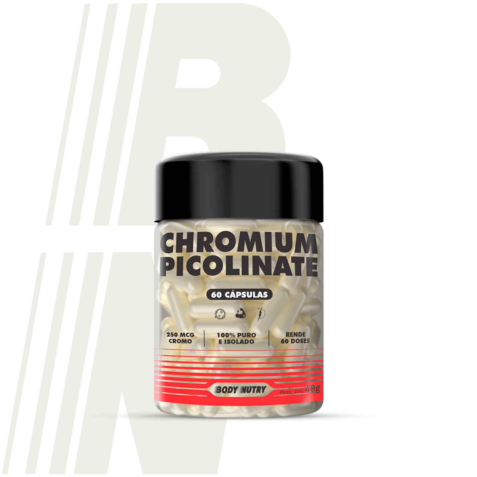 INGREDIENTES: PICOLINATO DE CROMO, ANTIAGLUTINANTE TALCO, LUBRIFICANTES (ESTEARATO DE MAGNÉSIO E CELULOSE MICROCRISTALINA) E ANTIUMECTANTE DIÓXIDO DE SILÍCIO. COMPOSIÇÃO DA CÁPSULA: GELATINA, ÁGUA PURIFICADA E CORANTE INORGÂNICO DIÓXIDO DE TITÂNIO.